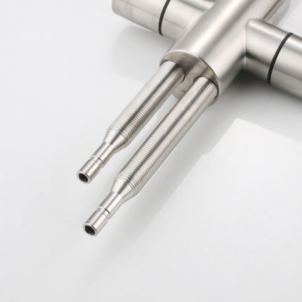 Product Description Model No.-50Product NameKitchen faucetMaterial304 Stainless SteelHandleDouble handleTemperatureBelow 40℃CertificatesRohs. CETestSalt spray test. water hammer test. life test. explosion-proof testWarranty5