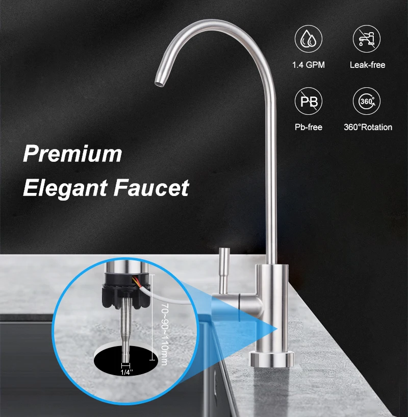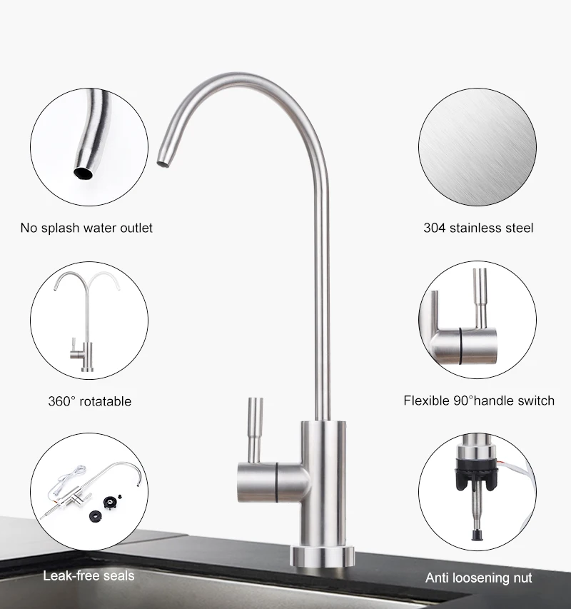 High Quality Drinking Water Faucet 1/4 Tube Lead-free Goose Neck 360 Swivel Ro Water Faucet