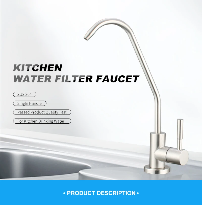 Products Description Model No.-30Product NameWater filter faucetMaterialSUS 304 body. ceramics valve core materialHandleSingle handleTemperatureBelow 40℃Surface TreatmentPolished and brushedCertificatesRohs. CETestSalt spray
