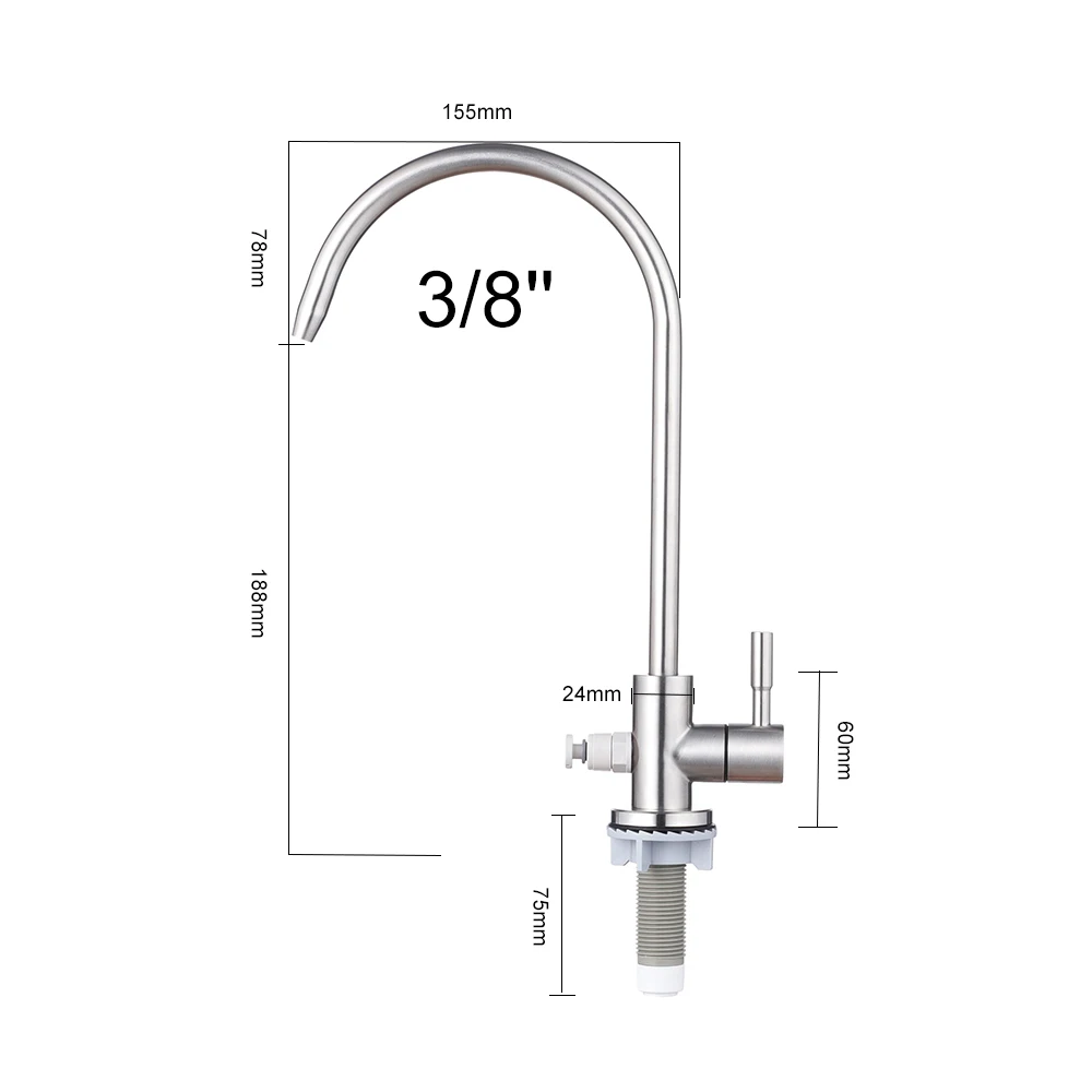3/8 Inch Reverse Osmosis Water Filter System Water Tap Faucet for Household Kitchen