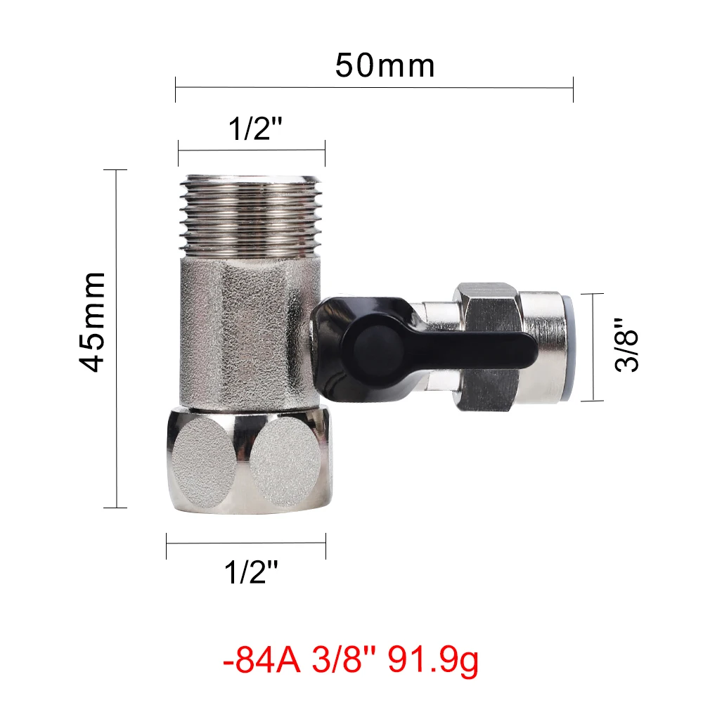 Brass 1/2 in Thread Three Ways Ball Valve Water Purifier Accessories Quick Tee Valve Fit for 3/8 in