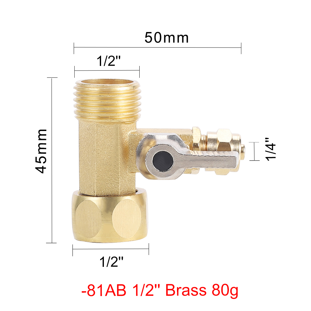 Brass G1/2 Male Female Thread Ball Valve Three Way Metal Ball Valve for G1/4 RO Water Purifier