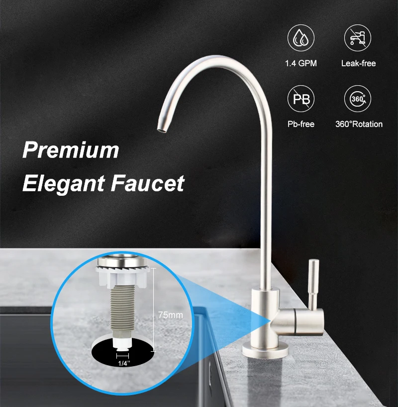 Quarter Inch Goose Neck Stainless Steel 304 Kitchen Faucets Drinking Purifier Water Tap RO Quick Fitting