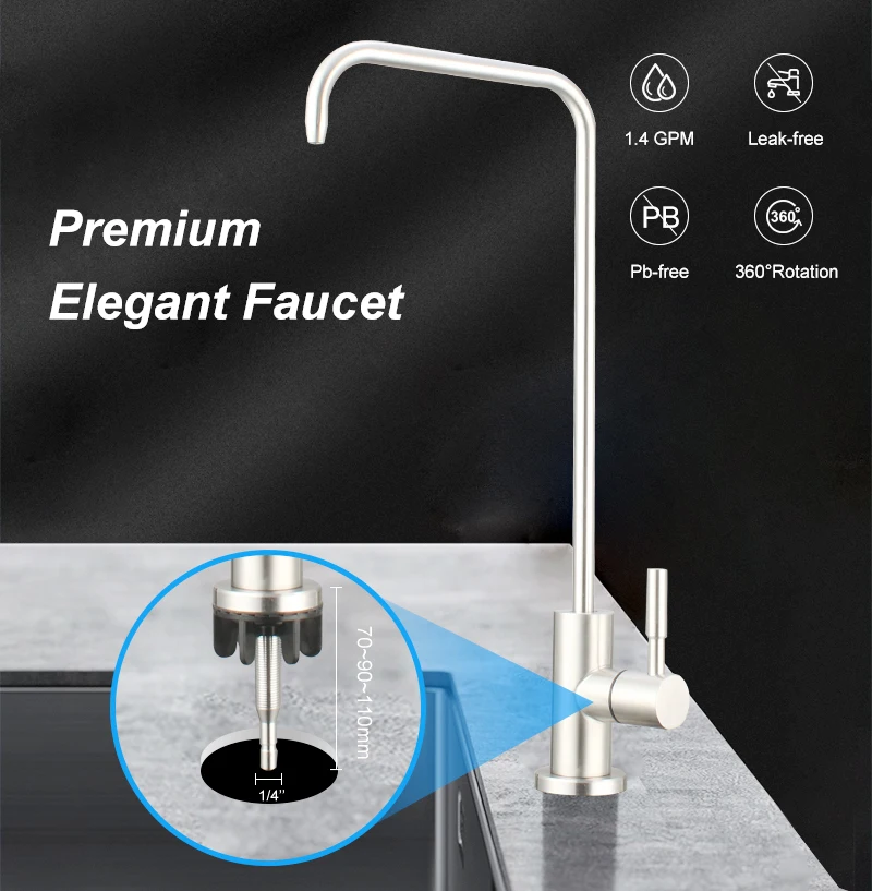 Quarter Inch Goose Neck Stainless Steel 304 Kitchen Faucets Drinking Purifier Water Tap RO Quick Fitting