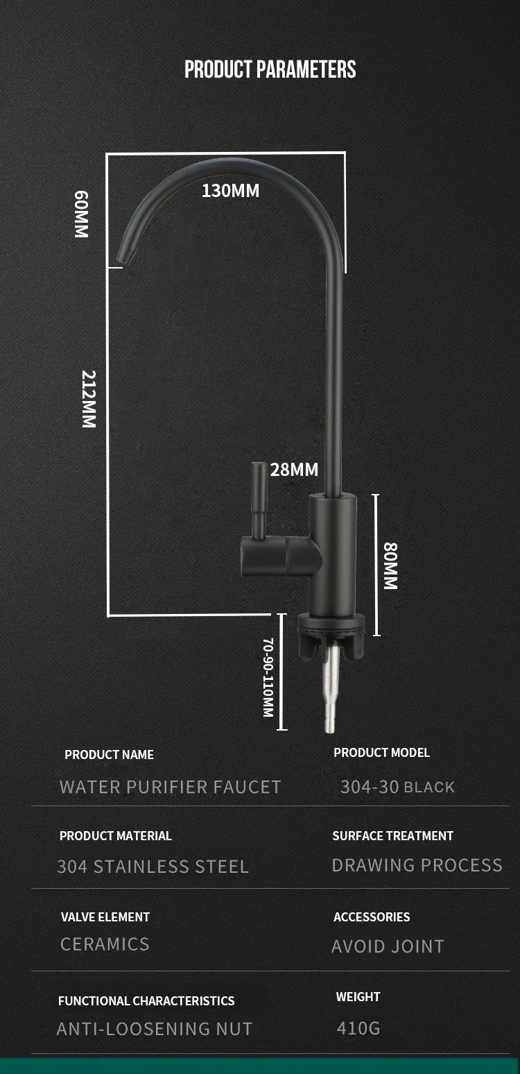 Faucet Tap for Water Purification Filter Drinking Black Faucet Handle Accessories Modern SUS304 Faucet Kitchen