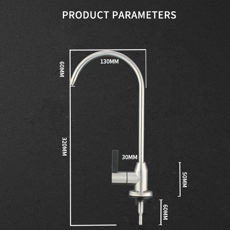 Products Description Model No.-30Product NameWater filter faucetMaterialSUS 304 body. ceramics valve core materialHandleSingle handleTemperatureBelow 40℃Surface TreatmentPolished and brushedCertificatesRohs. CETestSalt spray