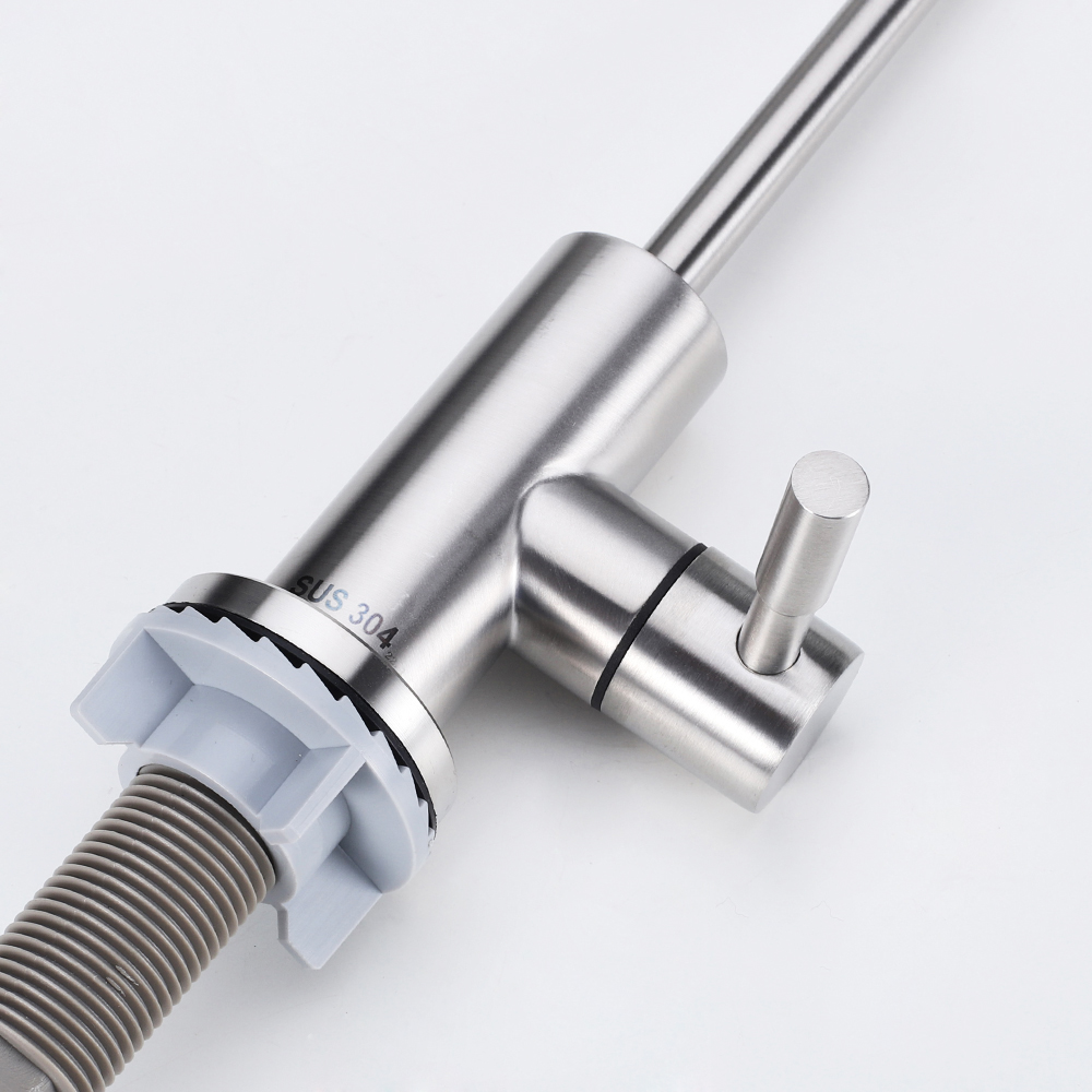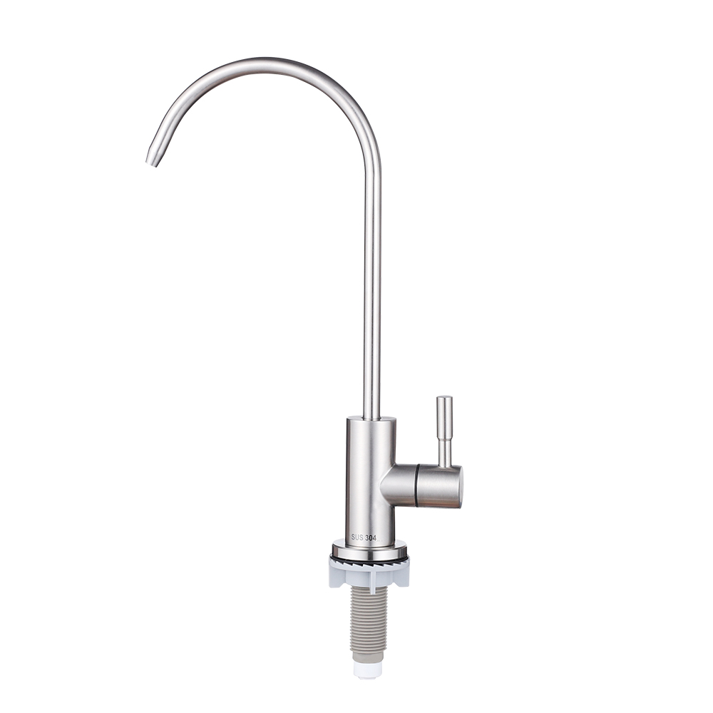 Product Description Model No.304-ZS001Product NameDrinking water filter faucetMaterialSUS 304 body.HandleSingle handleTemperatureBelow 40℃Surface TreatmentPolished and brushedCertificatesRohs. CETestSalt spray test. water hammer