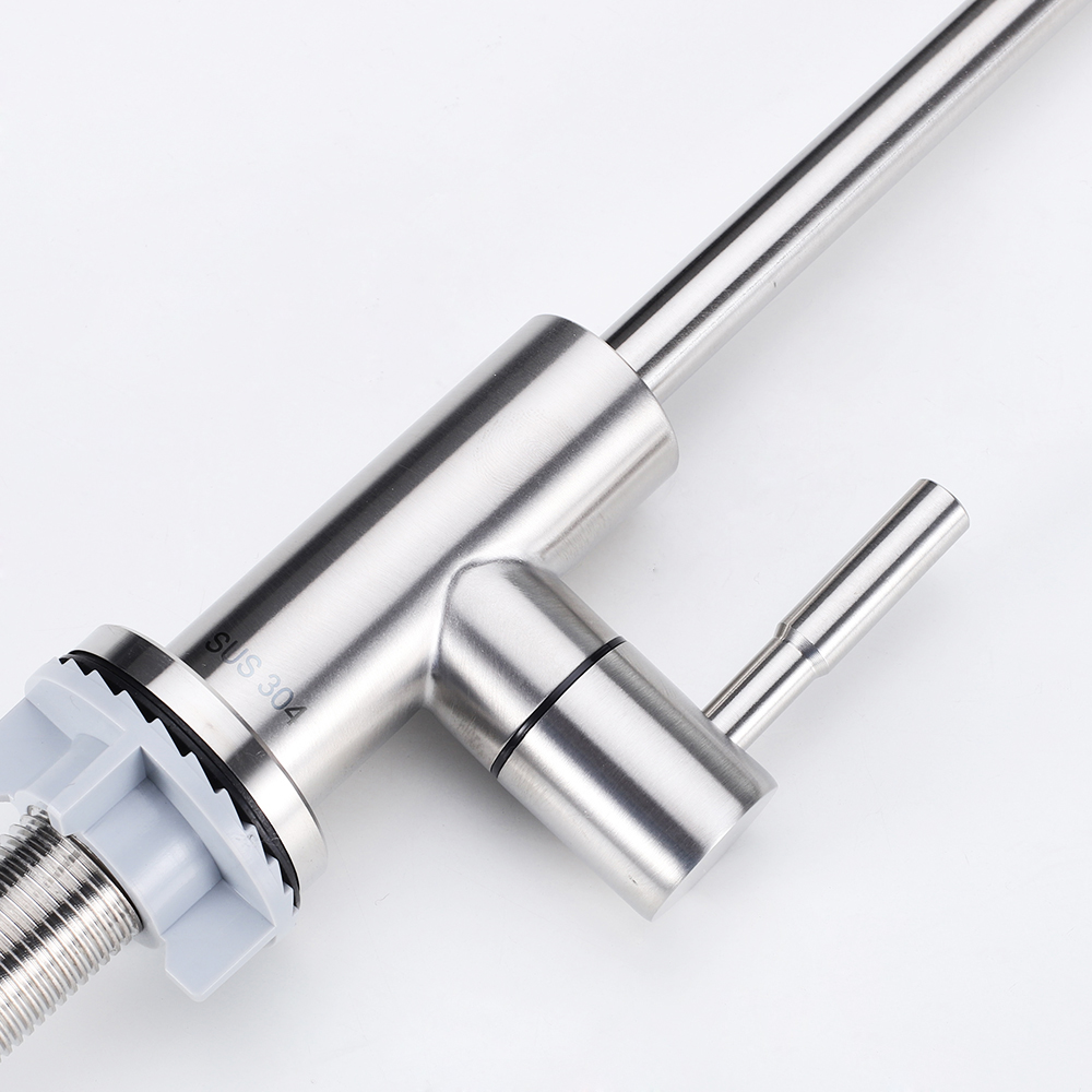 Product Description Model No.E300Product NameDrinking water filter faucetMaterialSUS 304 body.HandleSingle handleTemperatureBelow 40℃Surface TreatmentPolished and brushedCertificatesRohs. CETestSalt spray test. water hammer
