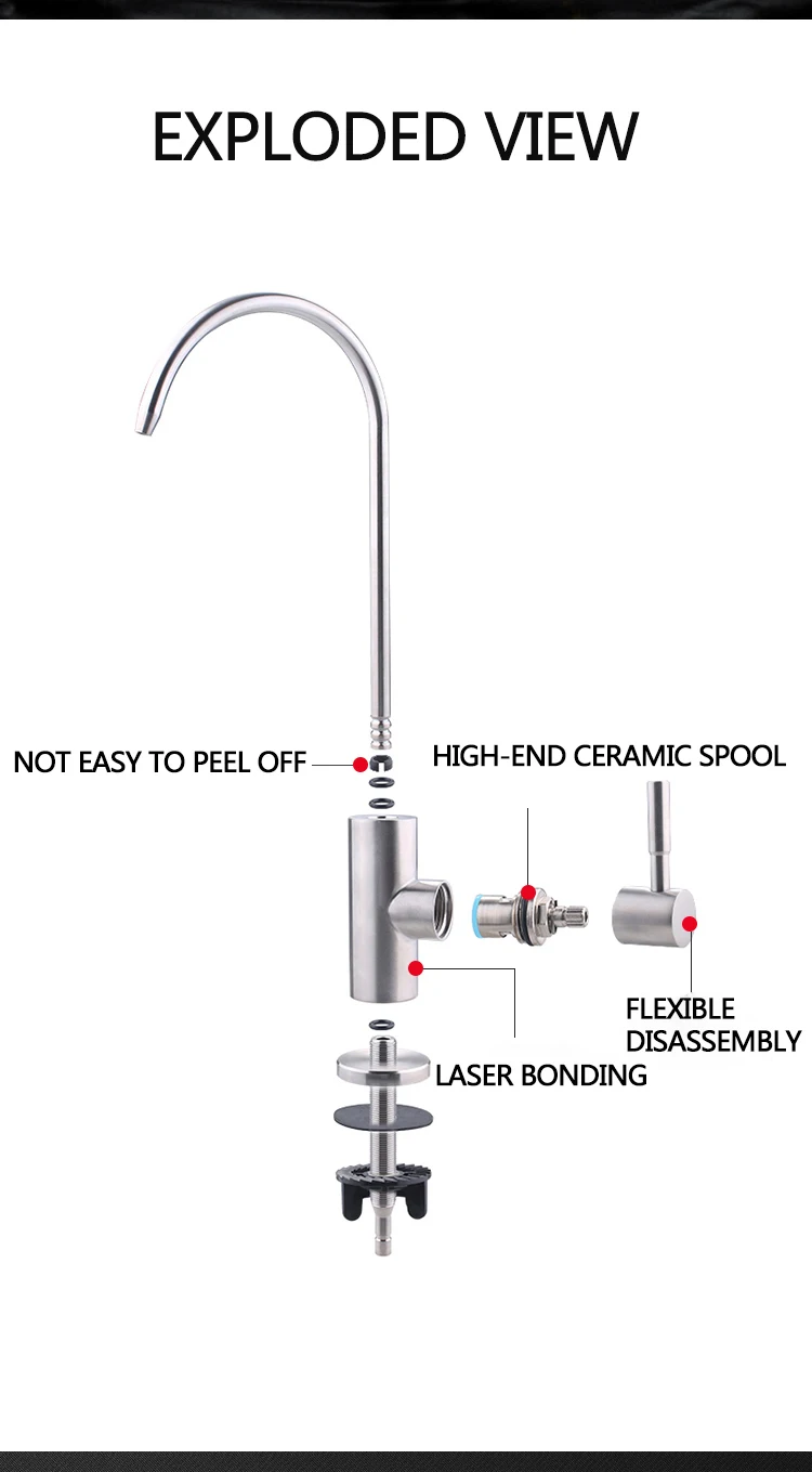 High Quality Reverse Osmosis Faucet Brushed Kitchen Flexible Goose Neck Drinking Water Faucet
