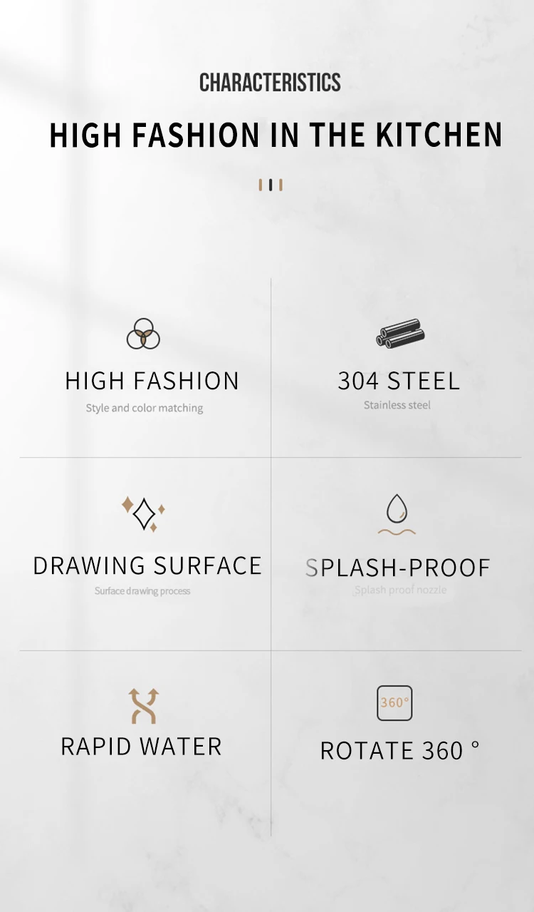Product Description Model No.-33SProduct NameWater FaucetMaterialSUS 304 body. ceramics valve core materialHandleSingle handleTemperatureBelow 40℃Surface TreatmentPolished and brushedCertificatesRohs. CETestSalt spray test.