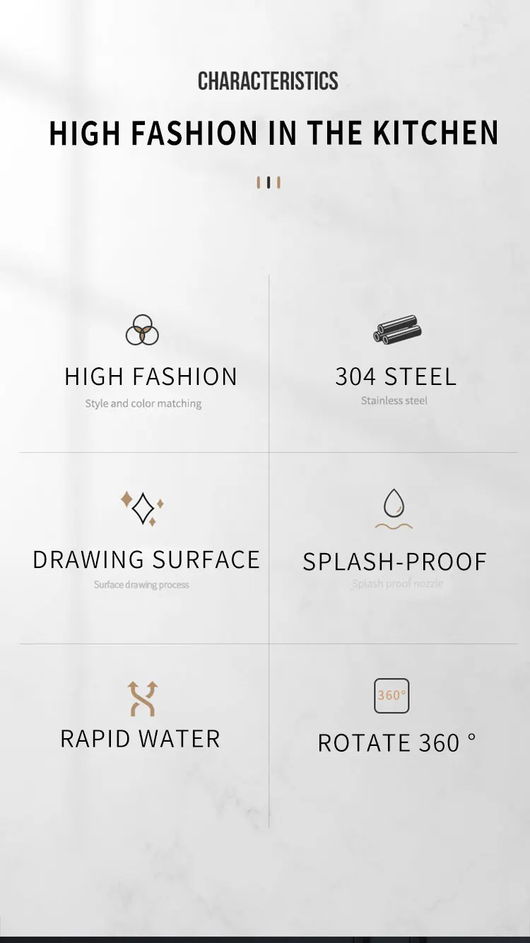 Product Description Model No.-30FProduct NameWater FaucetMaterialSUS 304 body. ceramics valve core materialHandleSingle handleTemperatureBelow 40℃Surface TreatmentPolished and brushedCertificatesRohs. CETestSalt spray test.