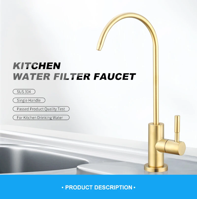 Product Description Model No.304-ZS001Product NameDrinking water filter faucetMaterialSUS 304 body.HandleSingle handleTemperatureBelow 40℃Surface TreatmentPolished and brushedCertificatesRohs. CETestSalt spray test. water hammer