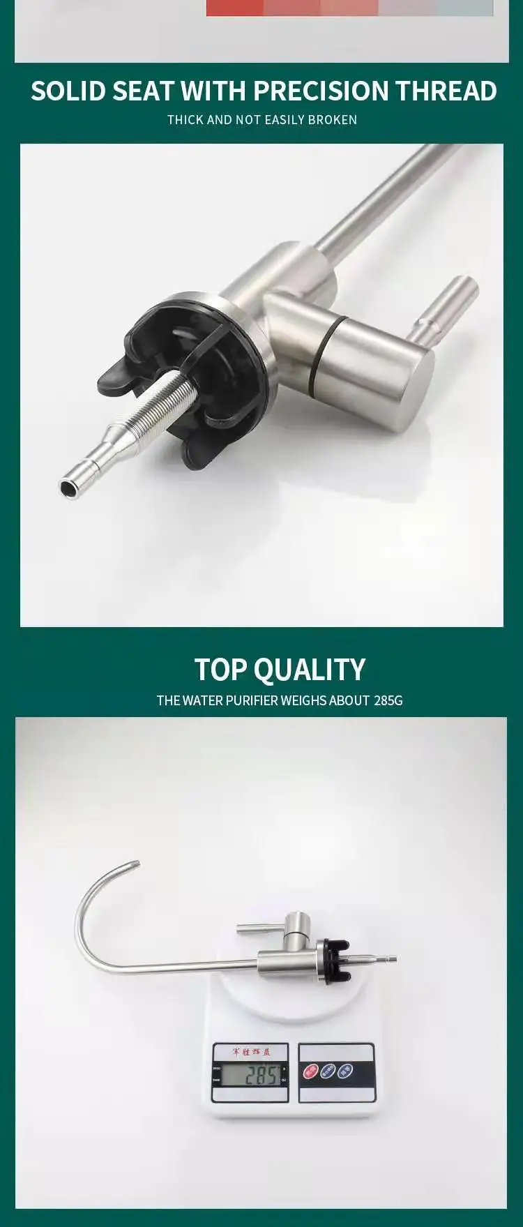 Products Description Model No.-30Product NameWater filter faucetMaterialSUS 304 body. ceramics valve core materialHandleSingle handleTemperatureBelow 40℃Surface TreatmentPolished and brushedCertificatesRohs. CETestSalt spray